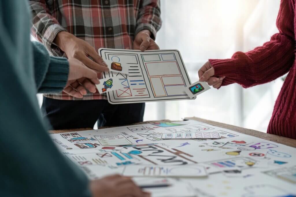 - le prototypage papier avec des éléments bruts et simples. L’idée centrale est d’aller à l’essentiel pour que l’équipe reste flexible, ce qui permet de modifier le projet facilement si la mécanique d’apprentissage s’avère inefficace ou peu engageante.