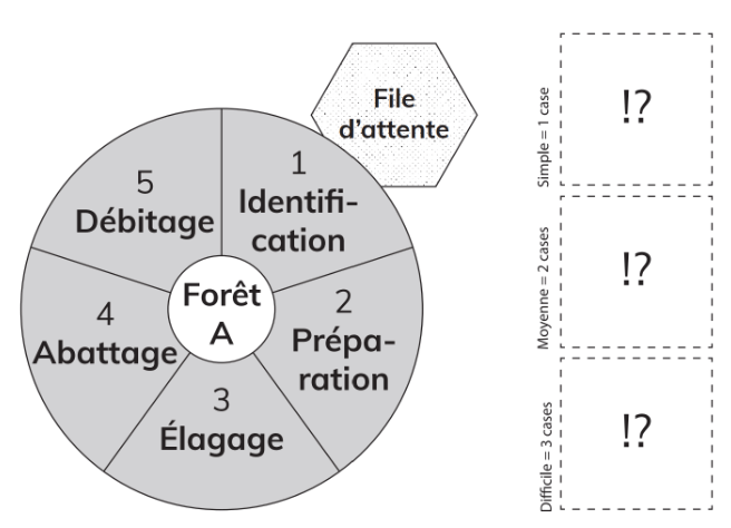 Dans cette seconde version du jeu, le parcours est plus clair, les différents espaces sont mieux identifiés. Une case « file d’attente » est créé, introduisant ici une mécanique plus stratégique : les espaces (forêt, carrière, scierie, etc.) ne sont accessibles qu’à un seul joueur à la fois. Les autres doivent patienter dans la file d’attente. Les joueurs ont donc intérêt à se répartir sur leur plateau plutôt que de se positionner tous sur les mêmes zones. Problème : les cartes questions sont tirées au hasard et les niveaux de difficulté de ces questions sont encore mal équilibrés.
