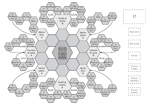 Dans le cadre du projet de mallette pédagogique pour Notre-Dame-de-Paris, nous avons conçu 13 jeux pédagogiques pour faire découvrir les métiers et la restauration du bâtiment. Sans surprise, le jeux qui ont fait l’objet d’itérations sur différentes versions de prototypes et de tests utilisateurs poussés ont été les plus appréciés sur l’ensemble de la production finale. Par exemple, l’un des jeux consiste à expliquer comment les matériaux bruts (bois, pierre) sont trouvés et transformés pour produire les éléments de la cathédrale. Ce jeux a fait l’objet de 6 itérations dont voici quelques exemples :